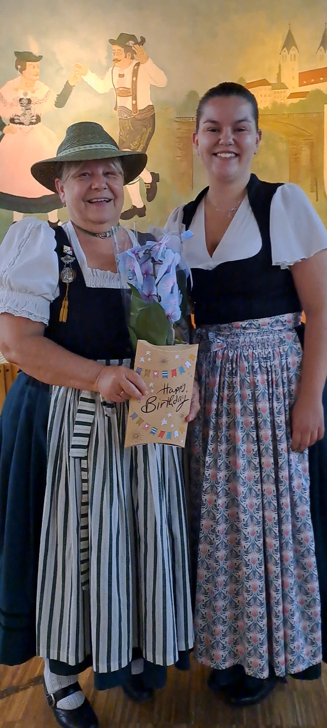 Der 26.07.2025 war ein ganz besonderer Vereinsabend. Dagmar Nowak, unsere 1. Vorsitzende, feierte ihren 60. Geburtstag bereits im Juni mit ihrer Familie und Anfang Juli mit Freunden. Heute erhielt sie nachträglich Glückwünsche vom Trachtenverein.