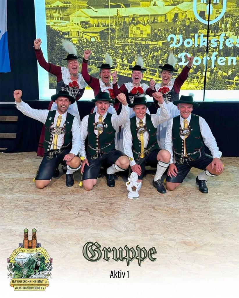 Bei der Preisverleihung gewannen bei den Gruppen sowohl unsere Aktiv- als auch unsere Jugendgruppe den 1. Platz, was natürlich besonders bejubelt wurde. Als Preis gab’s jeweils einen Krug, den unsere Vorplattler und Vortänzerin gespendet haben. Anschließend spielte dann die „Zwigglmusi“ zum Tanz auf und rundeten einen sehr schönen Tag ab, bei dem der Spaß für Alle im Vordergrund stand und so saßen wir bis spätabends im Biergarten zusammen.