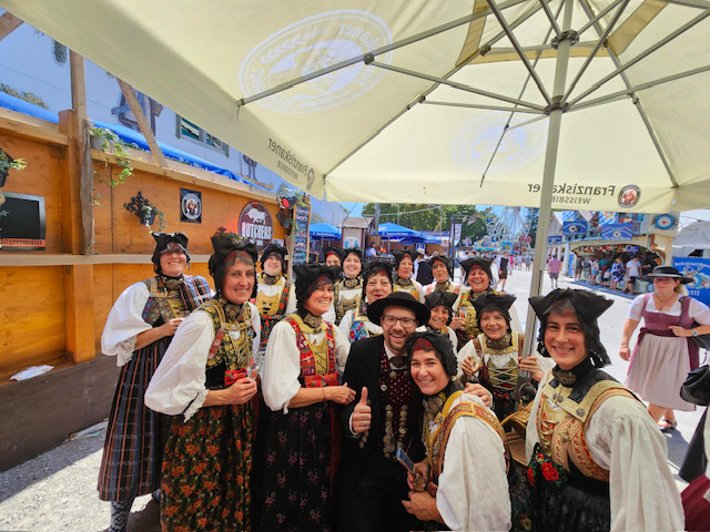 Im Anschluss trafen sich einige der Trachtlerinnen mit ihrem 1. Vorstand, Markus Erhorn, an der Bar vor dem Großen Festzelt: Zur Erfrischung gab es ein Gläschen Sekt für alle!