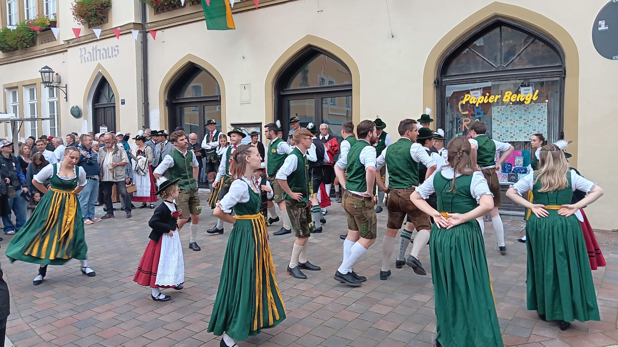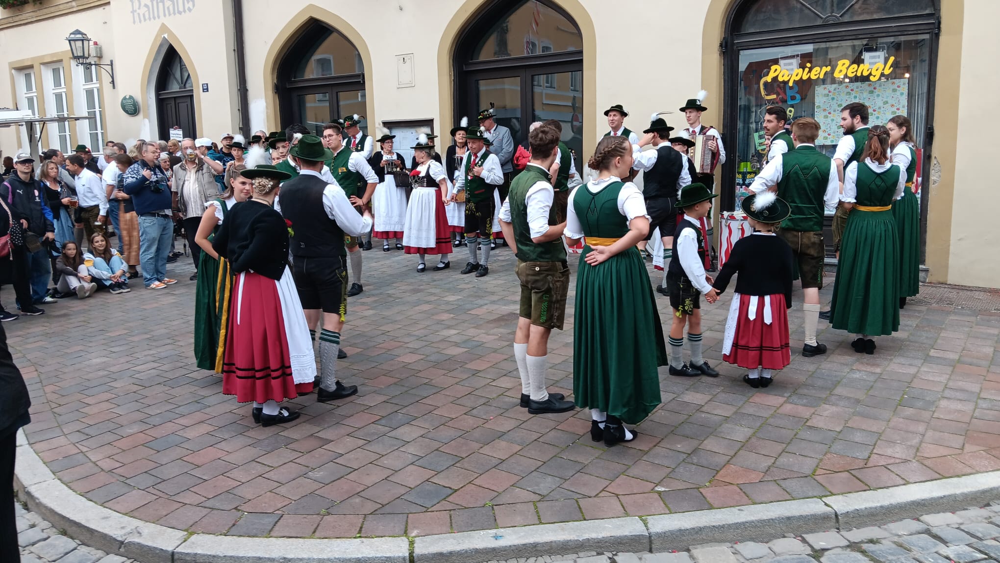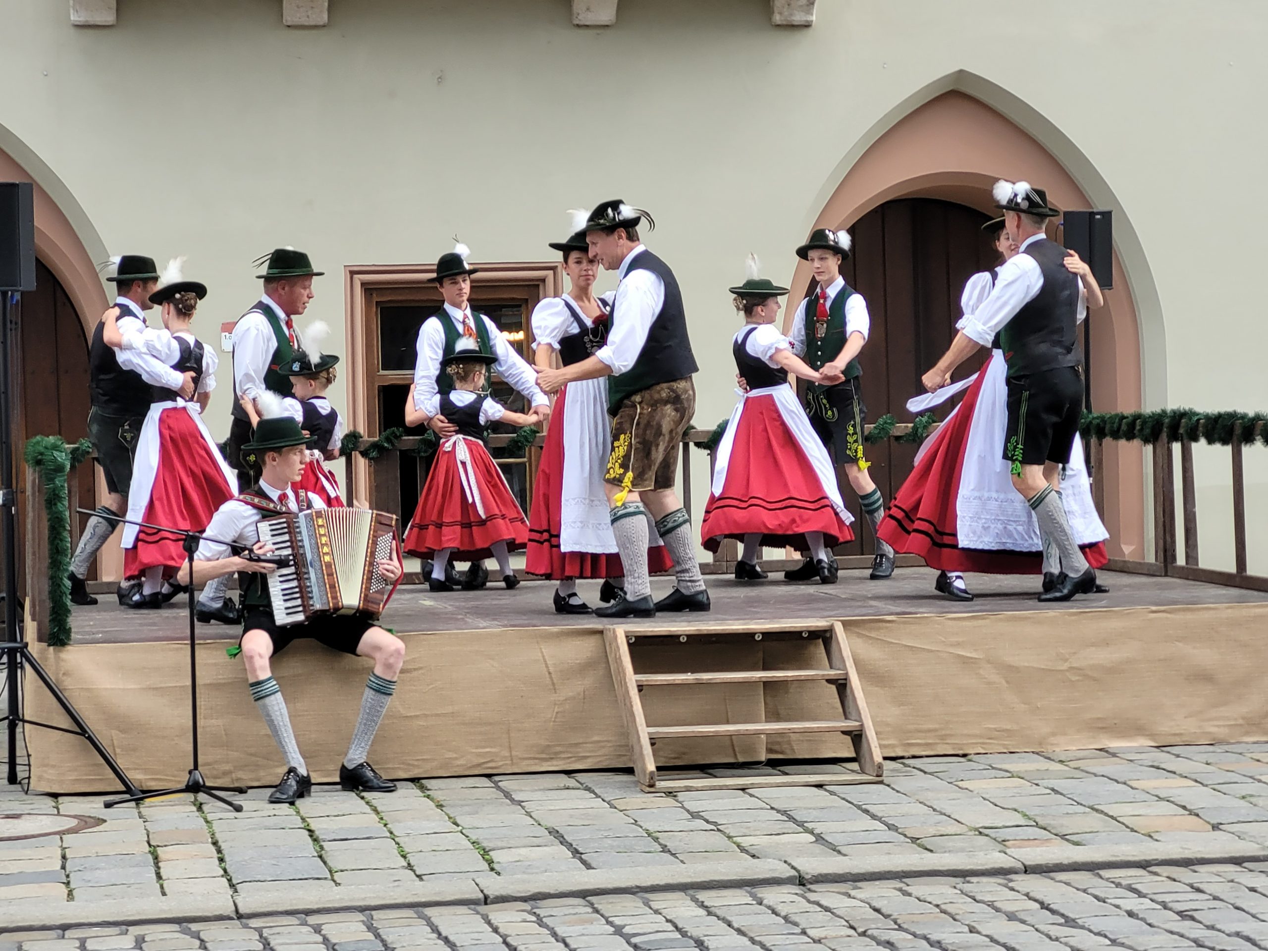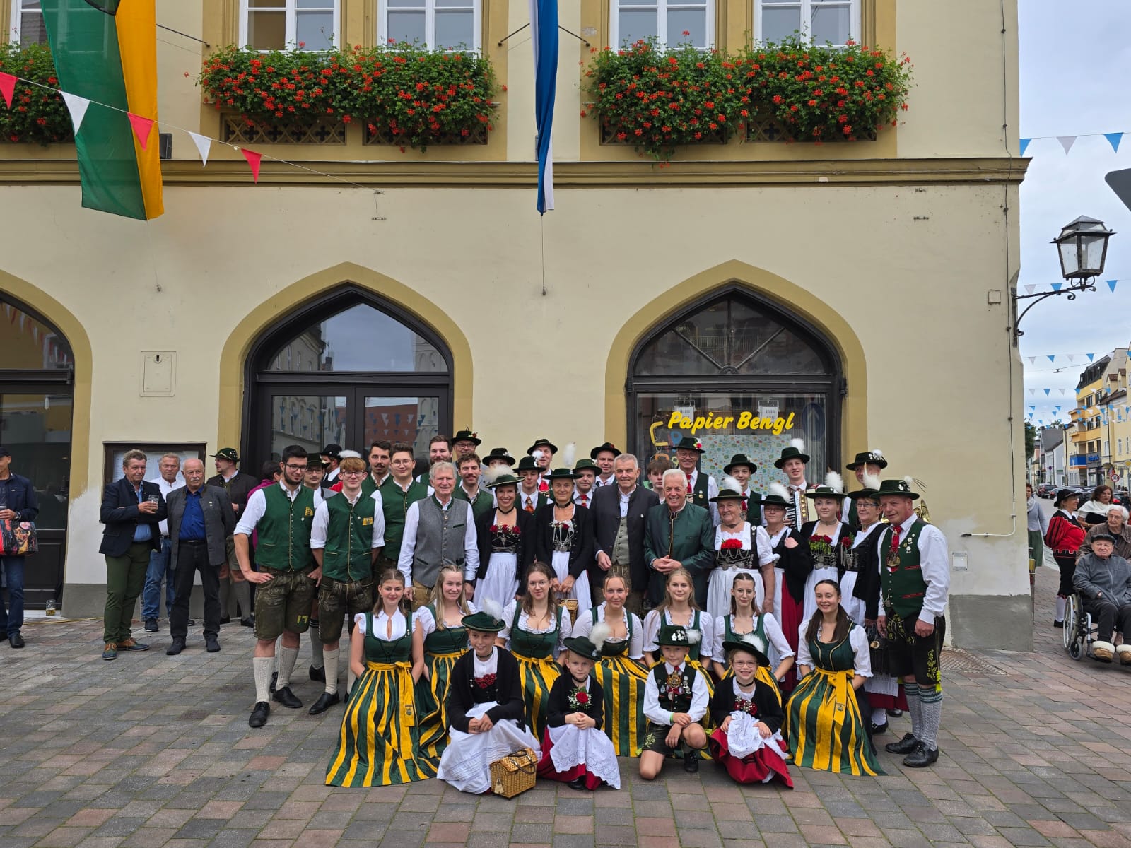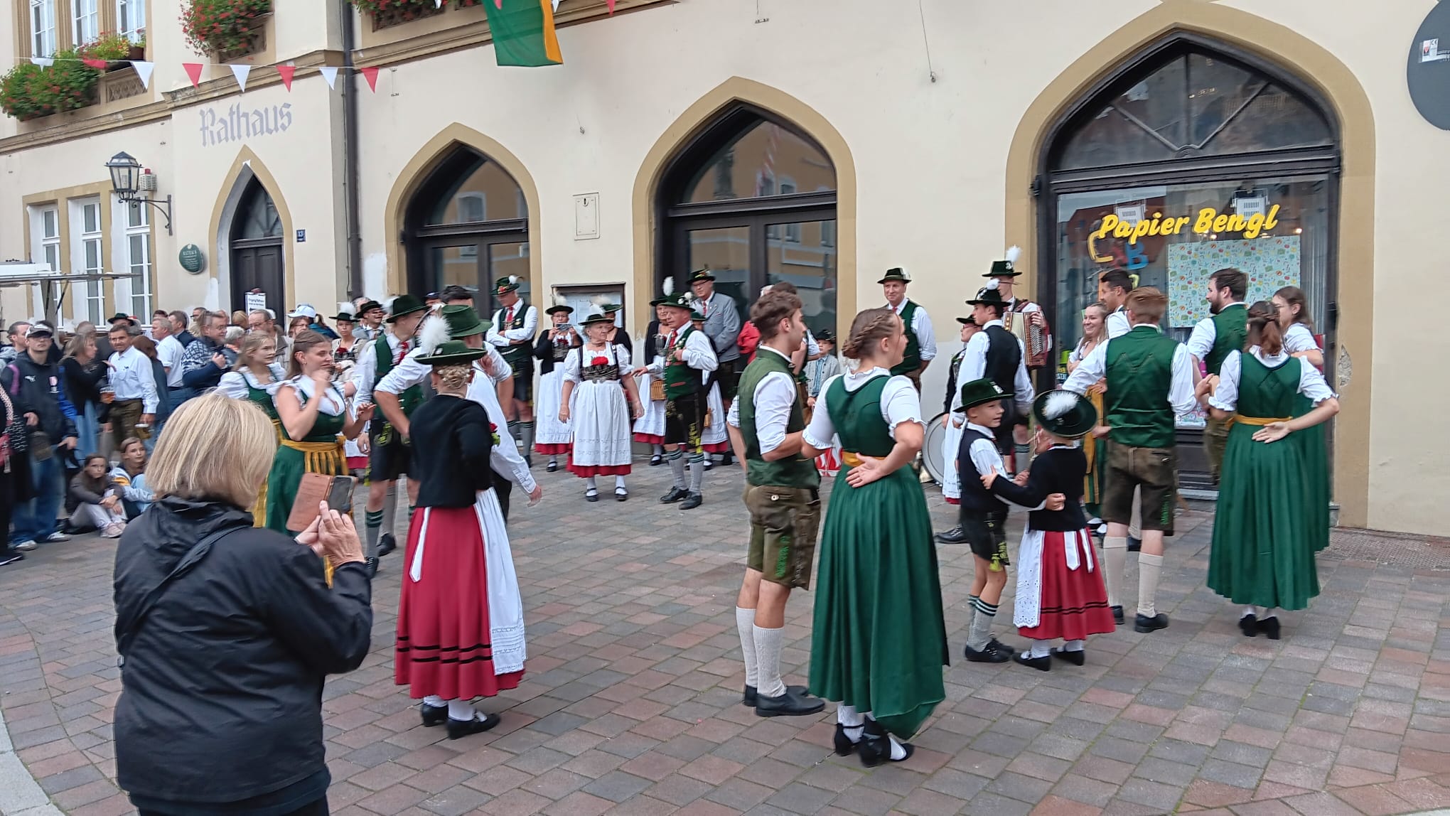 Es wurde vor dem Rathaus geplattelt und getanzt. Gemeinsam veranstalteten wir den Nachmittag mit der Landshuter Stadtkapelle und der Roßbachtaler Blaskapelle.
