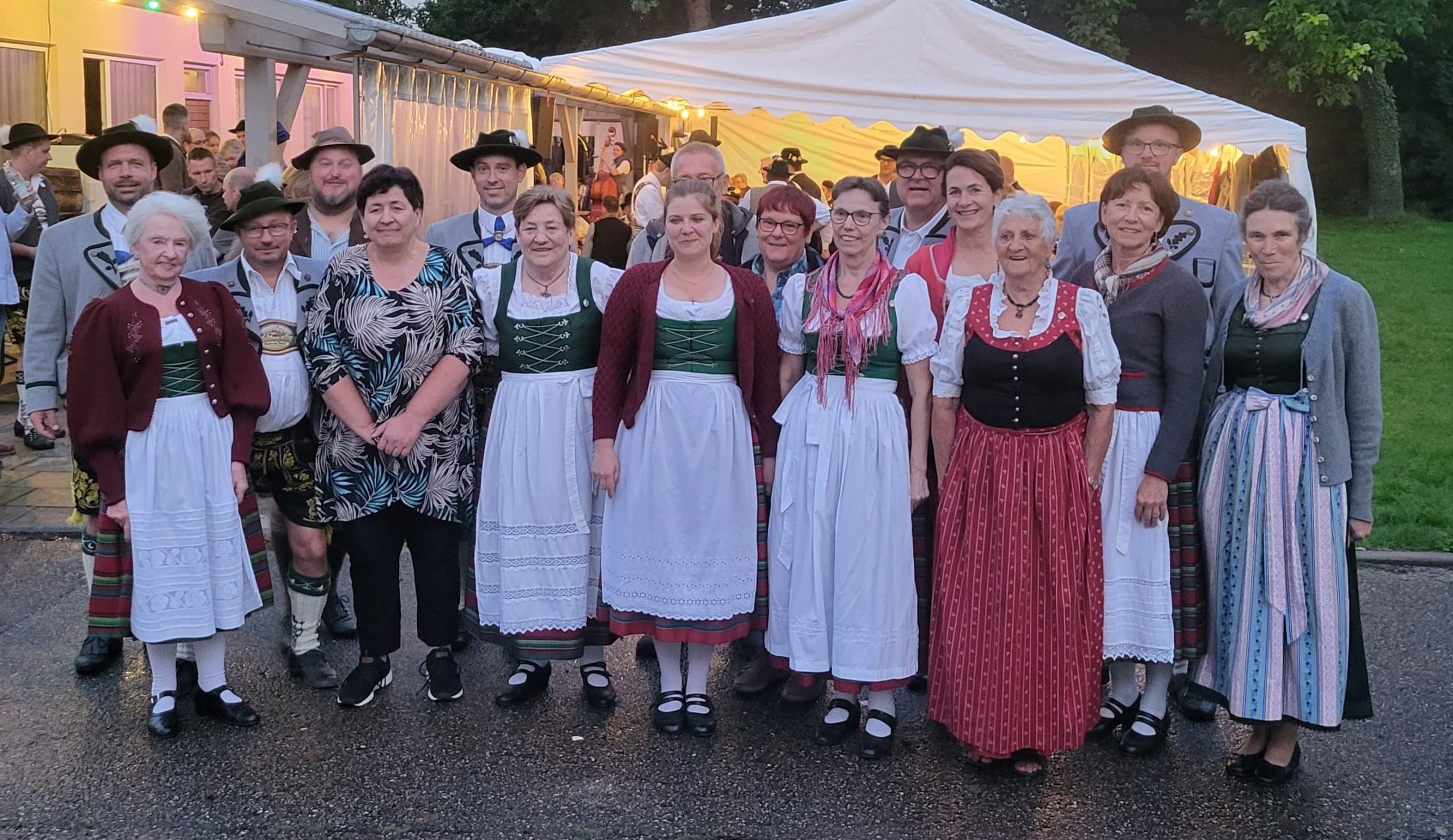 Geehrt wurden für 15 Jahre: Andi Lang, Christian Zaun, Robert Wimmer, Brigitte Walther, Edith Widdmann-Schweiger und Kathrin Kubbutat. 20 Jahre: Benni Gallas, Martin Baaske, Martin und Frieda Wimmer, Natalie und MdL Josef Schmid sowie Uta Leistner. 35 Jahre: Christian Furtmayr. 40 Jahre: Anneliese Thalmair. 50 Jahre: Roswitha Staudinger-Hergenröder und Heidi Gantner. 65 Jahre: Liesi Zipper. Ganz besonders hervorheben möchten wir an dieser Stelle die langjährige Mitgliedschaft von unserer Liesi. Sie unterstützte unseren Verein lange Jahre als Deandlvertreterin und übernahm auch das Kuchenbuffet bei unserem Volkstanz in den Mai. Vor allem aber unterstützte sie tatkräftig ihren Mann Fritz Zipper bei seinem Amt als Gau-Vorplattler. Obwohl es viel regnete, konnten wir bis in die späten Abendstunden im Zelt sitzen bleiben, das viele fleißige Helfer am Donnerstag bei unserem Vereinsheim aufbauten. Wir bedanken uns nochmals bei allen Mitgliedern und Gästen für diese schöne Fest.