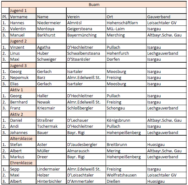 Herzlichen Glückwunsch an alle Sieger und Platzierten.